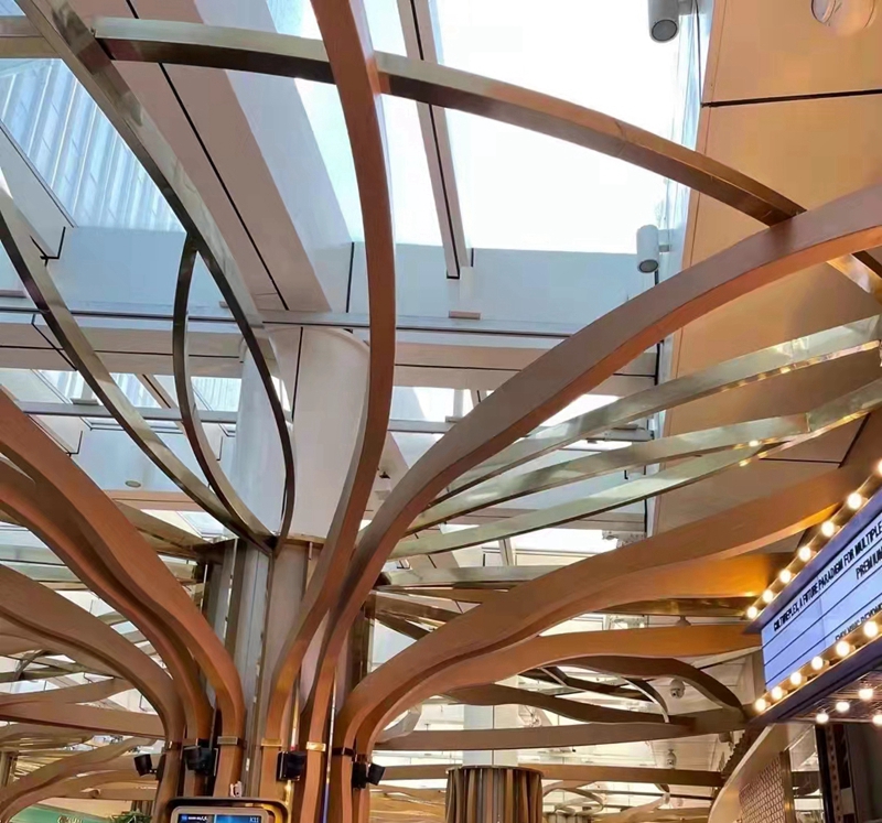 廣泛應(yīng)用于各種建筑內(nèi)外墻、大堂門面、柱飾、高架走廊、梁柱、機(jī)場、車站、醫(yī)院、人行天橋、室內(nèi)異形吊頂?shù)取?br> All kinds of building external walls, the lobby facade, column act the role ofing, elevated corridors, beams, airports, railway stations, hospitals, pedestrian bridge, indoor alien condole top, etc.